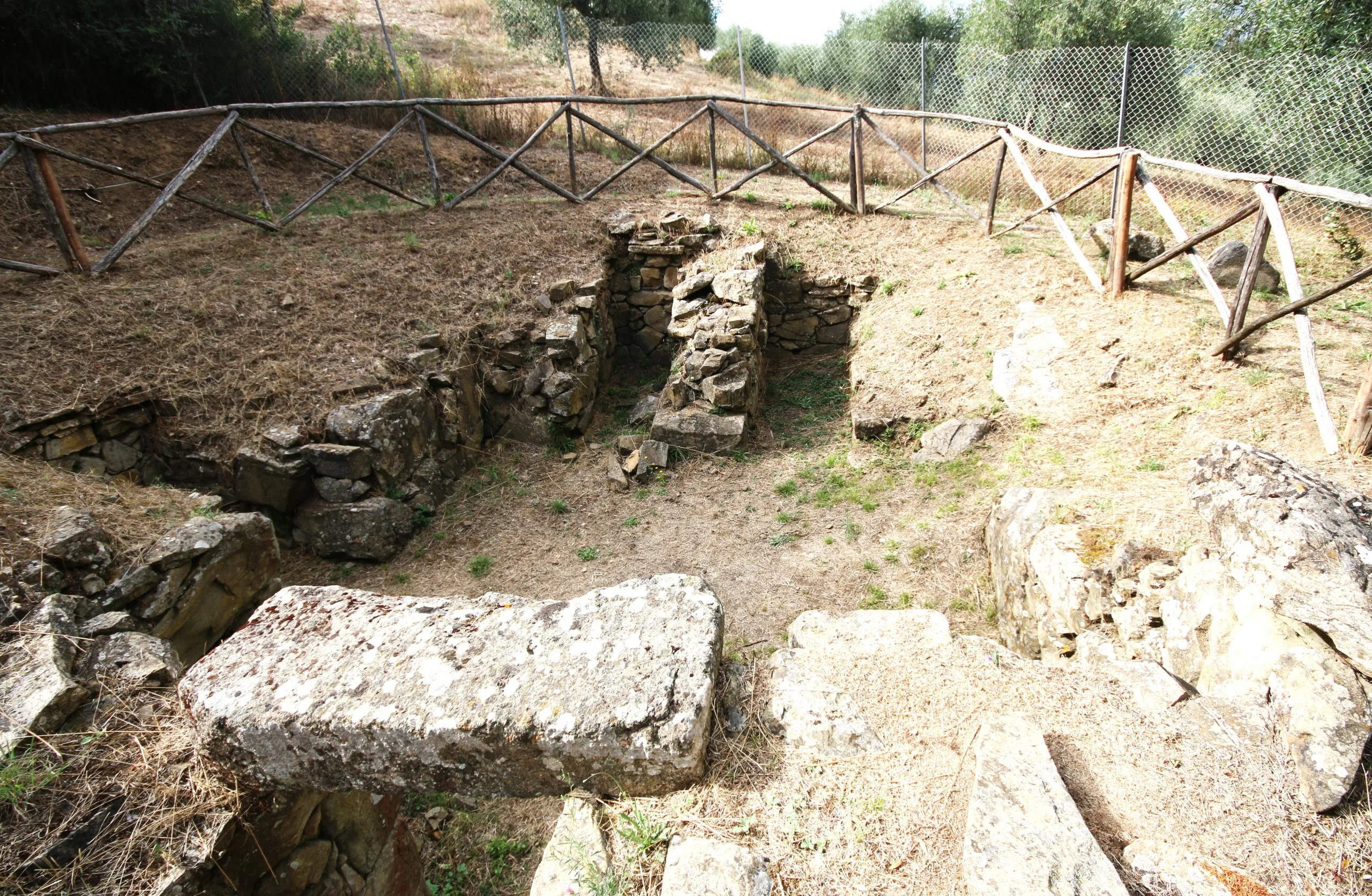 Al momento del suo ritrovamento era ancora visibile parte della copertura formata da grandi lastre aggettanti, mentre il soffitto già in antico doveva presentare problemi di stabilità: durante la sua scoperta infatti risultava sorretto da una colonna in marmo scanalata, oggi dispersa. La Tomba non ha però restituito materiali significativi che possano consentire di fissare con precisione il periodo della sua edificazione, ma sulla base della sola tipologia architettonica si può comunque proporre una sua possibile datazione verso la fine del settimo o l’inizio del sesto secolo a.C., così come dai vari materiali rinvenuti risulta ormai certo il suo riutilizzo nel secondo secolo a.C., in epoca romana repubblicana.