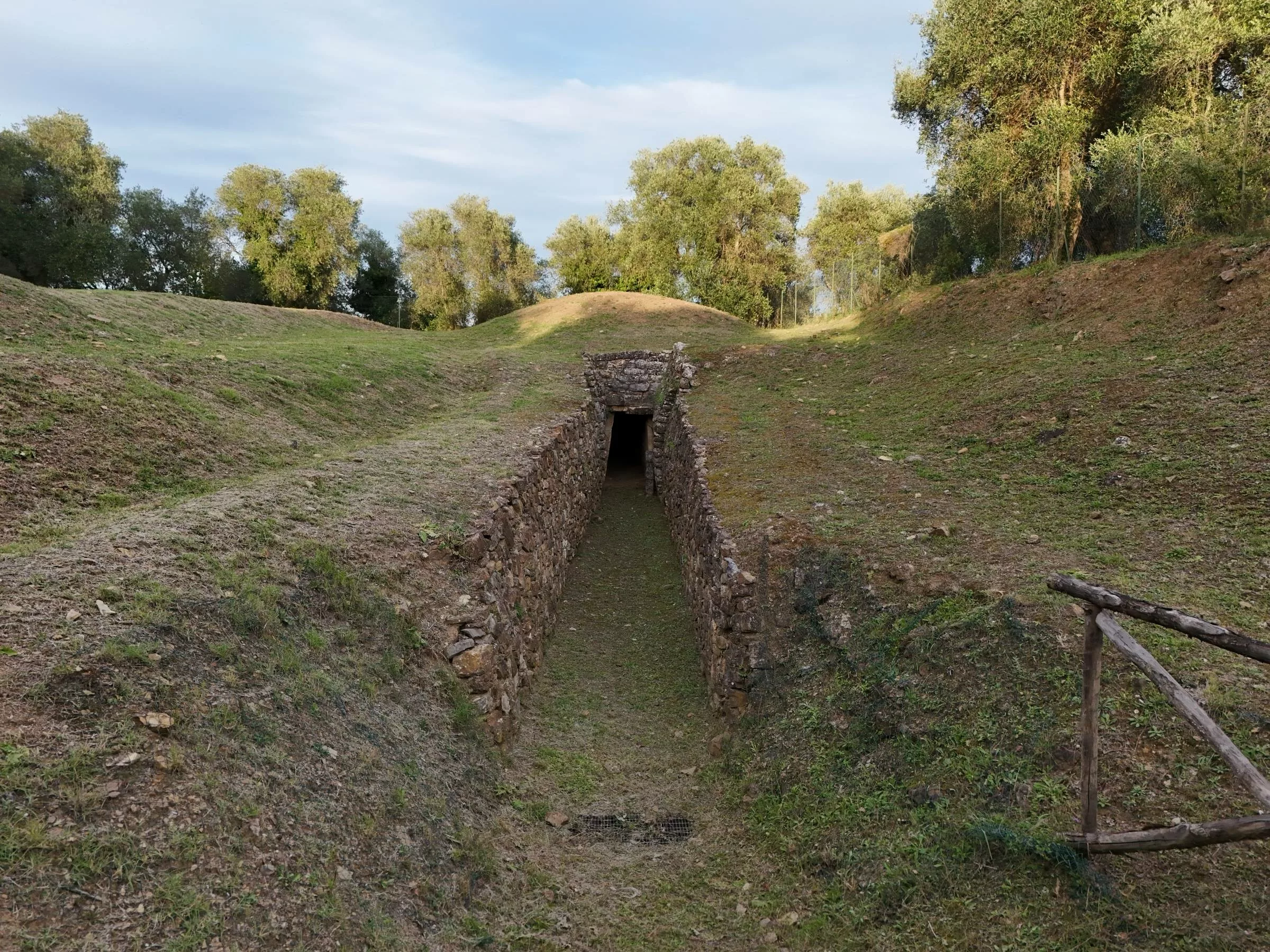 Posta sulla Via dei Sepolcri, a circa 600 metri di distanza dalla Tomba della Pietrera, si trova la Tomba del Diavolino II, altro grandioso monumento funebre del Parco archeologico di Vetulonia, noto anche come Tomba del Pozzo dell’Abate. La struttura, considerata uno dei sepolcri più importanti della geografia funeraria etrusca, si trova leggermente in basso rispetto al piano stradale e consiste in un imponente tumulo di circa 60 metri di diametro, cui si accede mediante un lungo dromos a cielo aperto nel primo tratto, al cui termine è posta la porta di accesso dell’unica camera sepolcrale. Il cumulo di terra è delimitato da un triplice filare di pietre squadrate che formano un tamburo circolare posto attorno alla Tomba stessa. Percorrendo dunque il lungo e stretto dromos si viene condotti alla porta ad architrave che chiudeva l’accesso al corridoio coperto, mentre la camera sepolcrale, di forma quadrangolare, è stata raccordata alla volta della falsa cupola di copertura tramite la tecnica dell’inserimento di pennacchi angolari. Esempio fra più rappresentativi della sua tipologia, e, come la Pietrera, tra più grandi tumuli rinvenuti in Etruria, il sepolcro venne esplorato una prima volta nel 1884, quando venne messo in luce un breve tratto del tamburo, per poi venire nuovamente scavato nel 1903, quando venne liberata la camera centrale e recuperato qualche frammento del corredo funerario. Il pilastro centrale posto a sorreggere la volta è stato ricostruito intorno al 1980 con materiale plastico.